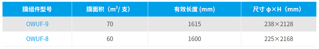注:灌封膠材質(zhì)為環(huán)氧樹脂;膜管材質(zhì)為UPVC。